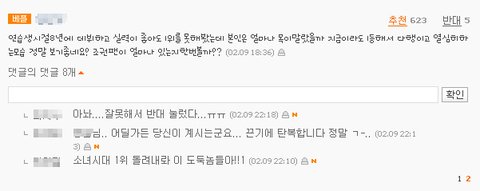 저 분이 '소녀시대 여신' '투애니원 짜증남' 이딴식으로 댓글 달던데 ^^