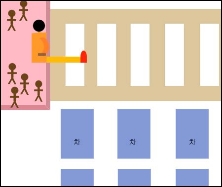 횡단보도 신호가 파란불이라 멈춰섰던 차들은