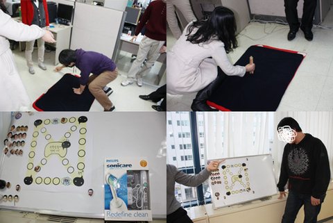 열심히 공들여 만들어 둔 무한도전 윷놀이 판과 말로 본격적인 윷놀이를 시작했는데요 상품이 걸려있으니 재미가 두 ~ 배!^^