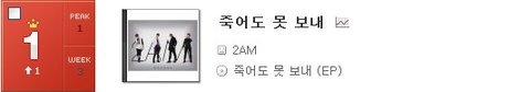 소녀시대 'Oh' 열풍을 잠재우고 2AM의 '죽어도 못 보내'가 1위를 재탈환했네요.