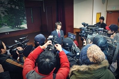 프레스의 관심 속에 정치인 손모으기를 여유롭게 유지.