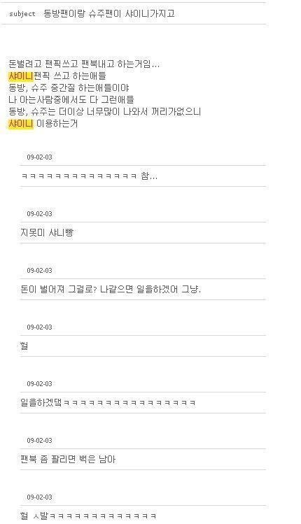 8자기네들 별명 도용하면 생지랄 다떨어놓고는 정작 지네들이 도용한 슈주별명은 팬들이 아무리 뭐라해도 공카에서도 별신경안씀
