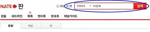 판 전체검색에서 제이름 "이정화" 검색하니까