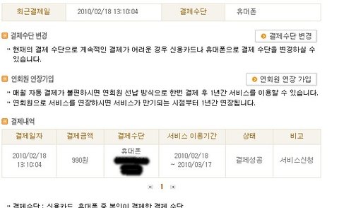 위의 캡쳐에서 보시듯 방금 전 결제를 했지요.