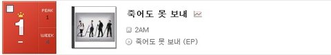 지난주에 이어 2AM의 '죽어도 못 보내'가 2주 연속 1위에 올랐네요.