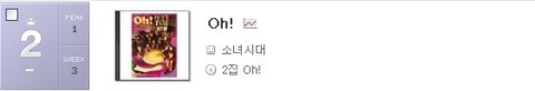 소녀시대의 'Oh!'가 지난주에 이어 연속 2주네요.