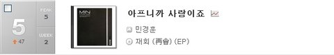 돌아온 민경훈의 '아프니까 사랑이죠'가 5위네요.
