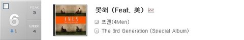 포맨의 '못해'는 지난주보다 한계단 하락했네요.