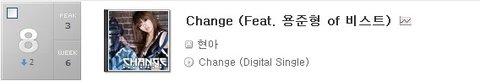 현아의 퍼포먼스 노래 체인지도 순위가 다소 하락했네요.
