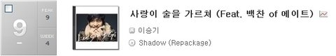 이승기의 '사랑이 술을 가르쳐'는 순위변동이 없네요.
