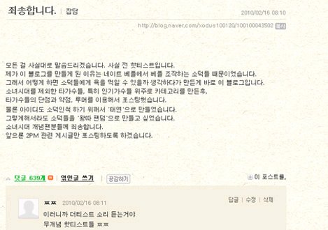 자꾸 소퀴들 타가수 기사와서 베플조작하고