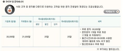 10대들을 위한 문자요금제를 알아보았어요