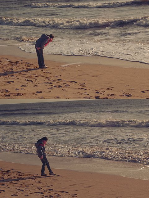 ↑호기심많은 여자아이.......한참 멍때리고 파도랑 싸우려고하는 행동같은게