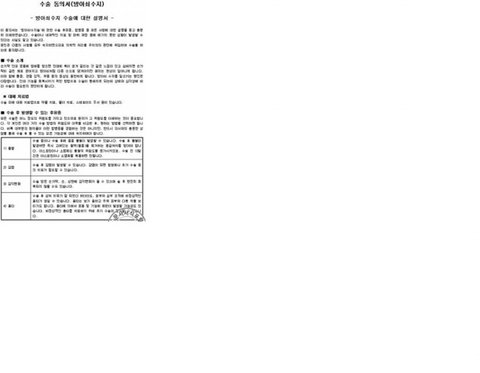 수술장에서 시행하는 수술은 말할 것도 없고 내시경과 같은 간단한 시술, CT, MRI와 같은 흔하게 하는 검사에서도 모두 동의서를 받습니다...물론 그 동의서에서는 이 시술로 인한 최악의 상황까지 설명이 되고 대부분의 경우 그것은 심장마비 등의 생사를 거는 부작용입니다..![]()