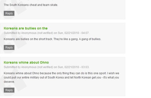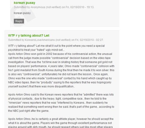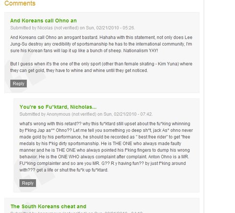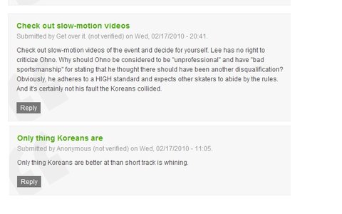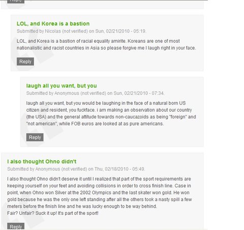 좀 늦었지만 이정수 선수가 "오노는 은메달을 가질 자격이 없다"라고 말 한 것에 대해서 미국 사이트들에서 난리가 났네요.