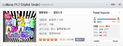 지난해 LG CYON ‘롤리팝폰’의 광고음악으로 사용된 디지털싱글 ‘롤리팝’은 CM송임에도 불구하고 국내 모든 음원차트 1위를 석권한 것은 물론 각종 패러디UCC와 롤리팝 패션을 유행시키는 등 문화현상으로 발전하며 센세이션을 일으켰다.