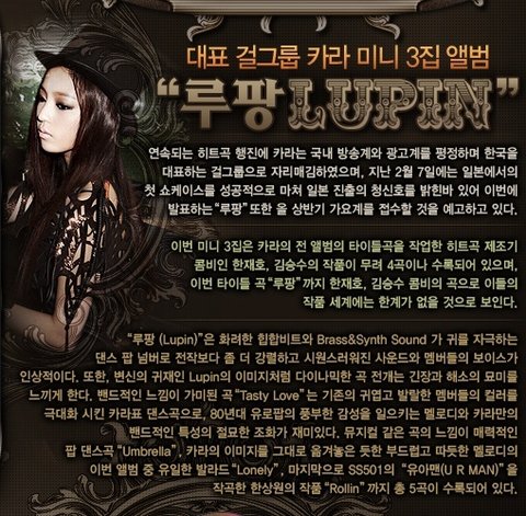 지난 17일 발표한 카라의 미니 3집 음반 '루팡(Lupin)'은