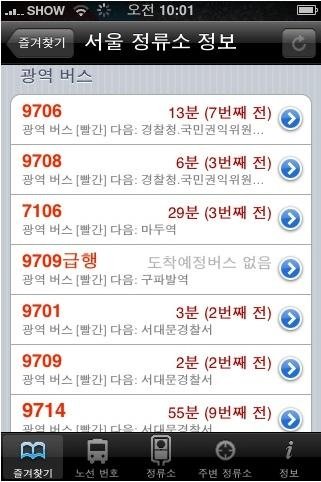 하지만 이것만으론 아이폰을 안다고 할 수 없고, 위성 지도보다 더 놀라운 어플이 있는데 그 어플은 정류소를 검색하고