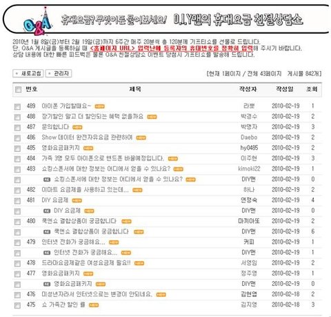 요금제가 많이 나와 머리 빠지게 스트레스 받으시는 분들은 DIY 상담게시판에 도움을 받아보는 것도 좋을 듯 싶다.