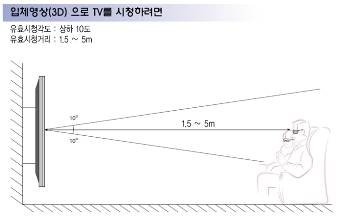 TV를 시청하기 전 편광안경을 쓰고 알맞은 시청거리와 각도에서