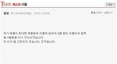 "제가 베플이 된다면 베플밑에 리플에 참여의사를 밝힌 리플러와 함께