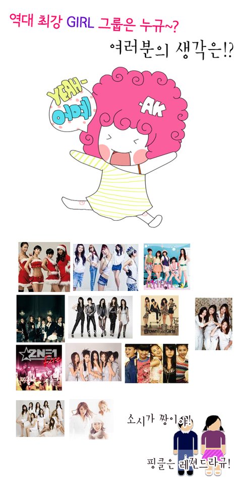 소녀시대, 핑클, SES, 원더걸스, 카라, 티아라, 에프엑스, 포미닛, 쥬얼리, 브아걸 등 아름다운 걸그룹들 중~!