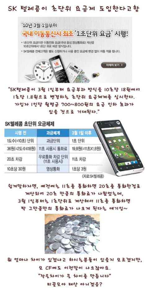 SK텔레콤에서 1초단위요금제를 실시하다고 하네요!!!