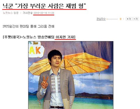 ■ 반박자료 2 - 2010년 2월 16일, 닉쿤의 "가장 부러운 사람은 재범" 기사 ■