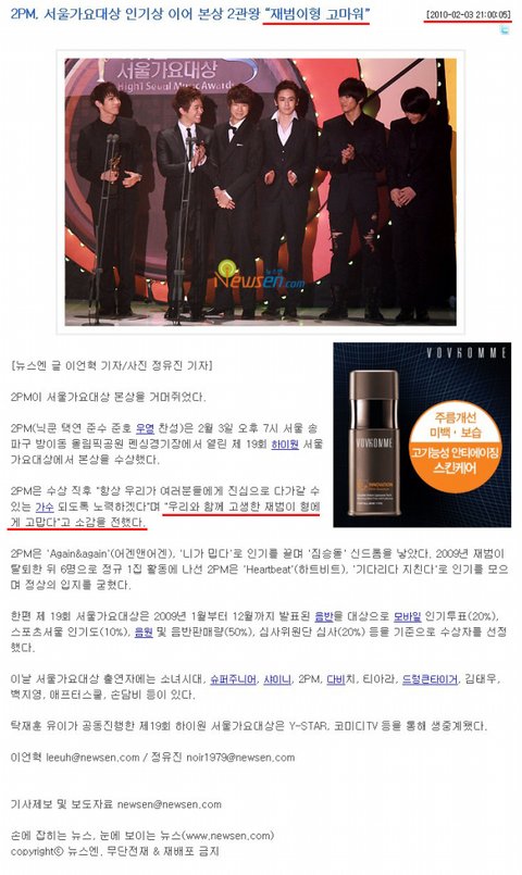 ■ 반박자료 3- 2010년 2월 3일, "재범이형 고마워" 기사 ■