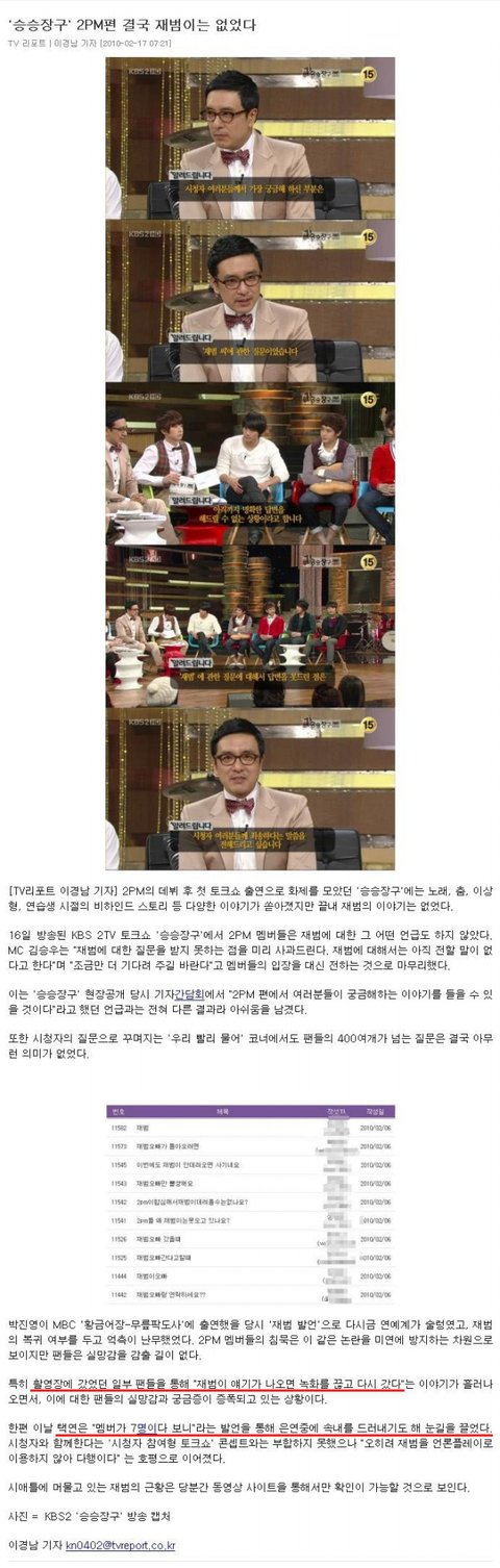 ■ 반박자료 5- 2010년 2월 16일 승승장구 방송에서 택연 "2PM 7명 언급" ■