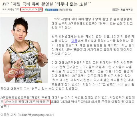 2월 25일 올라온 JYPE의 입장을 잘 못 이해한게 아니라면 이 기사들은 언플이라고밖에 생각할 수 없다.