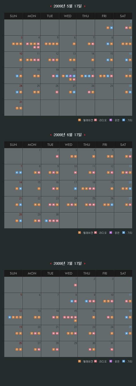 위 스케줄은 Again&Again 활동 당시 2PM의 활동 스케줄을 간략하게 볼 수 있는 모습이다.