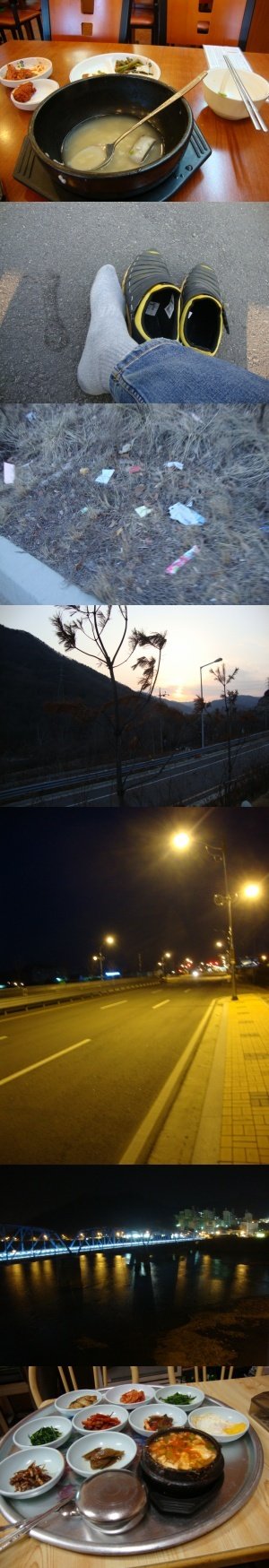 4시간쯤 걸은 뒤에 추풍령 가기 전에 황간이라는 곳에서 아점을 했다. 메뉴는 올뱅이국밥.