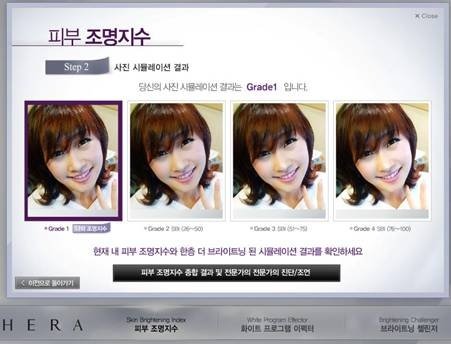 헤라 홈페이지에서 피부 조명지수를 알아볼 수 있는 테스트가 생겼어요