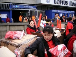 경기장앞에서 보따리간지로 아름다우신 언니오빠들께서 무료로 Reds 티셔츠는 물론이거니와! 태극기와 응원도구, 그리고 센스있으시게 휴대용 휴지까지! 나눠주시더라구요.
