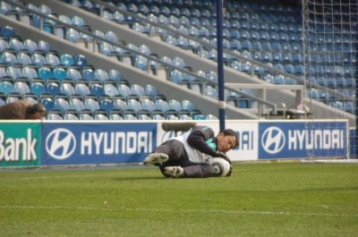 그래서 바로! 낼큼 뛰어들어가 이운재선수 뒤에서 선수들이 슈팅연습하는 장면을 사진으로 담고, 또 여기서 대박인게 박지성 선수가 찬 공이 골대 뒤로 넘어가면서 관중석 의자 한번맞고 저한테 튕겨서 제가 왼손으로 탁! 쳐냈습니다. 저의 왼손은 왠지 좀 될꺼같다능...