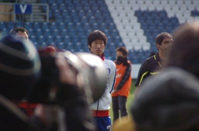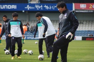 이렇게 막 찍고 잇는데, 선수들이 슈팅연습을 시작하시더라구요. 근데 이운재 선수 쪽 골대는 방송용 카메라들 전용석이라 일반인 출입을 금하고 있었습니다.