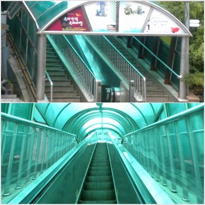 용두산공원 올라가는 에스컬레이터! 한 네번 연속으로 타면