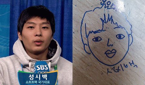 그러다가 친구가 그린 머리띠에 ...앗 곽윤기 ㅋㅋㅋ