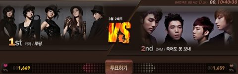 경쟁 상황은 카라 1669 : 2AM 1659 로