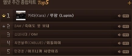 엠넷 카운트다운에서 카라의 루팡과 2AM의 죽어도 못 보내가 경쟁하고 있네요~