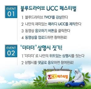 현대 블루 드라이브에서 2010년 3월8일부터 4월 11일까지 CF 패러디 UCC 페스티벌을 진행한다고 합니다! 현재 방영 중인 블루 드라이브의 TV CF를 감상한 후 기발하고 재밌는 패러디 UCC를 제작, 이벤트 홈페이지(http://tvpot.daum.net/project/ProjectView.do?projectid=469) 에서 동영상을 업로드하면 참여 완료!