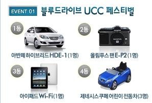 응모된 UCC 영상 중 아이디어의 참신성 및 플레이 횟수, 평점 등의 인기도를 고려하여 1등에게 아반떼 하이브리드를!(1명) 2등에게는 올림푸스 팬E-P2(1명), 3등에게는 아이패드 Wi-Fi(1명), 4등에게는 제네시스쿠페 어린이 전동차(3명)가 경품으로 증정된다고 합니다.