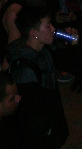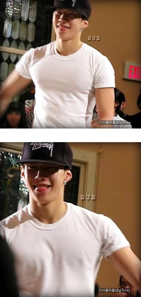 보라색 티셔츠 입고 티셔츠에 'AOM(댄스팀 이름)'써있었다고 하네요~