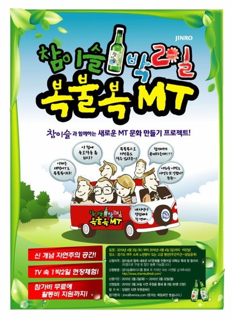 이번에 참이슬에서 '1박2일 복불복MT'라는 것을 한다고 하네요~