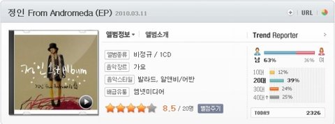 한편 정인의 솔로 앨범 '정인 프롬 안드로메다'는 11일 온라인과 오프라인에 동시에 발표된다. 이후 정인은 오는 12일 SBS-TV '김정은의 초콜릿', 13일 KBS-2TV '유희열의 스케치북'에 출연한다.