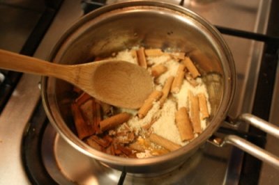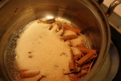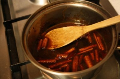 2. 흑설탕이나 갈색설탕과 함께 조각낸 계피를 냄비에 넣어주시고
