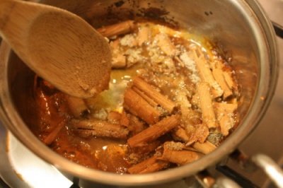 3. 설탕이 녹으면서 계피와 어우러져 좋은 냄새가 나기 시작합니다.
