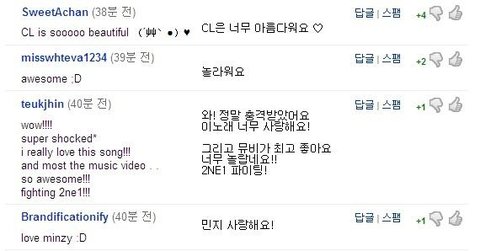 2NE1 뮤비 나오자마자 댓글 1500개가 순식간에