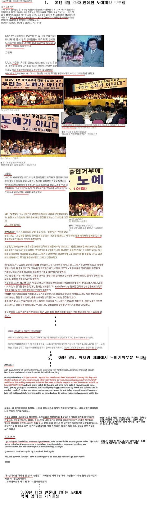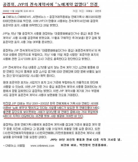 약관을 바꾸고 노예계약 없는 회사로 언플함. 기사내용에는 2001년 박진영의